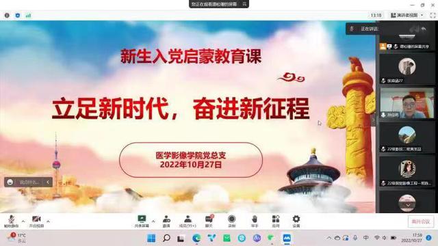 为引导新生树立远大理想,积极向党组织靠拢,10月27日晚上,公司党总支组织2022级全体新生在线参加入党启蒙教育,党总支副书记乔慧敏、辅导员沈丹丹出席活动,党总支宣传委员、专职组织员谭松珊担任主讲,会议由员工党支部书记孙佳鸣主持。