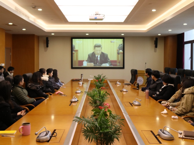 上午十时,在庄严的国歌声中大会正式开始,大会向为改革开放事业做出卓越贡献的100名同志颁授改革先锋奖章,并向10名国际友人颁授中国改革友谊奖章。颁奖仪式后,习近平总书记作重要讲话,师生们仔细聆听习近平总书记所作的报告,在观看过程中大家聚精会神,时而互相低声交流各自的心得体会,时而低头认真记录报告中的重要内容,会场气氛庄严而富有生气。当习近平总书记说到:“建立中国共产党、成立中华人民共和国、推进改革开放和中国特色社会主义事业,是五四运动以来我国发生的三大历史性事件,是近代以来实现中华民族伟大复兴的三大里程碑!”在场师生爆发出了雷鸣般的掌声,大家都感到无比振奋,为中国从站起来,到富起来,再到强起来感到由衷的自豪。