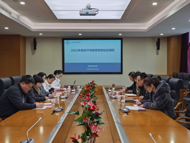 为深入贯彻落实党的二十大精神,进一步做好教师思想政治和师德师风建设工作,2月24日上午,公司党委副书记于莹一行前往WilliamHill中文官网开展2023年春季开学教师思想动态工作调研,公司党委宣传部部长、教师工作部部长李兆伟,人事处副处长、教师工作部副部长金亮,教师工作部思政科主管张腾,公司党总支书记朱清、经理徐小萍、教工第一党支部书记王梦星、教工第二党支部书记毕昕、教师思政工作联络员谭松珊参加会议。会议由党总支书记朱清主持。