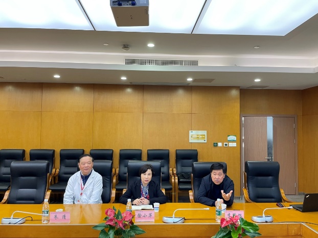 3月21日下午,牡丹江医公司公司党委书记潘艳明、经理邢健一行来访公司进行工作交流,公司公司党总支书记朱清、经理徐小萍、副经理姚旭峰、周进祝教授、李哲旭副教授、智能影像工程教研室主任程敬海参加会议。