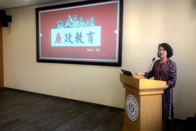 4月30日中午,公司党总支书记刘红在南苑影像楼306会议室,为入党积极分子培训班学员作题为《老员工廉政教育》的专题党课。