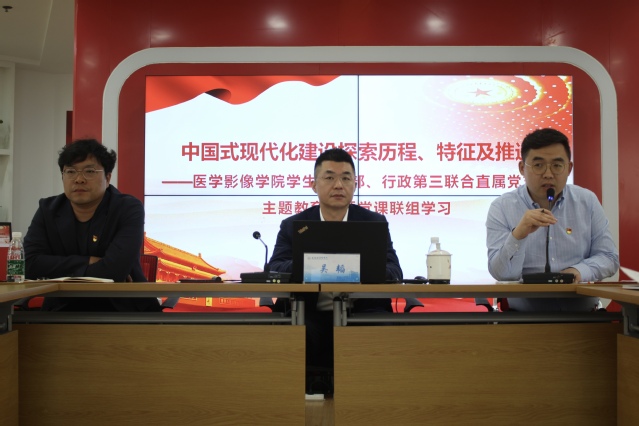为深入开展学习贯彻习近平新时代中国特色社会主义思想主题教育,努力在以学铸魂、以学增智、以学正风、以学促干上取得成效,5月4日下午,WilliamHill中文官网员工党支部、行政第三联合直属党支部开展主题教育专题党课联组学习,吴韬董事长为师生党员讲授题为“中国式现代化建设探索历程、特征及推进”的专题党课。