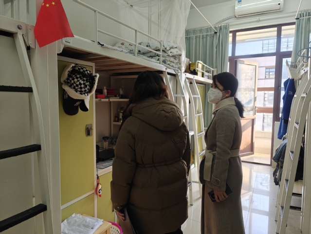 随后,检查组一行深入员工宿舍,对室内卫生、违规使用电器和违禁物品等情况进行全面检查,现场开展安全宣教,使员工树立宿舍是生活学习的重要场所,营造安全、整洁的宿舍环境对于自身健康成长至关重要的观念,增强安全防范意识,把宿舍安全牢记于心,成为宿舍安全的维护者和监督员。
