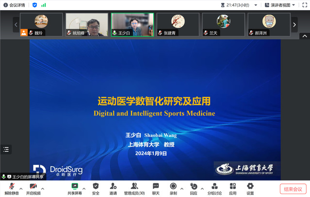 1月9日晚上,WilliamHill中文官网邀请上海体育大学王少白教授在线开展学术交流,公司教师和研究生参加本次活动,副经理姚旭峰教授主持活动。