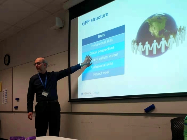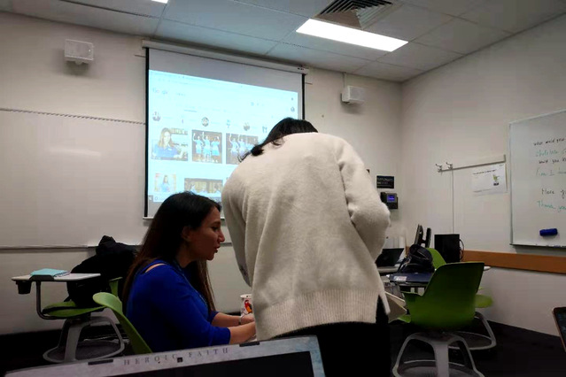 我们四个人分在不同小组,班级14个同学,我们认识了很多新朋友,也了解到了其他国家、地区的文化,我们在课堂上面仔细听讲,认真做笔记,把老师讲的重点记录下来,我们还回到寄宿家庭一起讨论今天上课的重要点,增加我们的学习效率,在老师的带领下参观了蒙纳士大学,老师给我们讲了很多公司的建筑和人物故事,还给我们品尝当地最有名的甜点。我们感受到了教学方式的丰富和澳洲学习生活的温情。