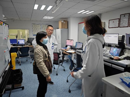 在同仁医院,放疗科主任胡超群介绍了放疗科的人员结构、科室规模、近年来所取得成绩及未来几年内的发展设想,并且也表达了与公司WilliamHill中文官网加强合作的愿望。徐小萍向胡主任介绍了公司概况和学科专业建设成效,双方就今后在教学、科研、实践基地建设等方面开展深入合作交换了意见,同时徐经理一行也详细了解了医院相关岗位招聘需求,为立足行业办专业汲取宝贵建议。