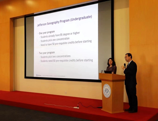 美国托马斯•杰斐逊大学一行首先参观了公司现代医学教育博物馆、影像楼超声及CT实训室和分子影像重点实验室。Michael Dryer教授对公司的发展理念、建设水平、体现的医学人文精神表示高度赞赏。同时,健康人文科学公司终身教授刘吉斌、副教授Traci B.Fox为WilliamHill中文官网员工作了关于超声检查技术发展的精彩讲座。