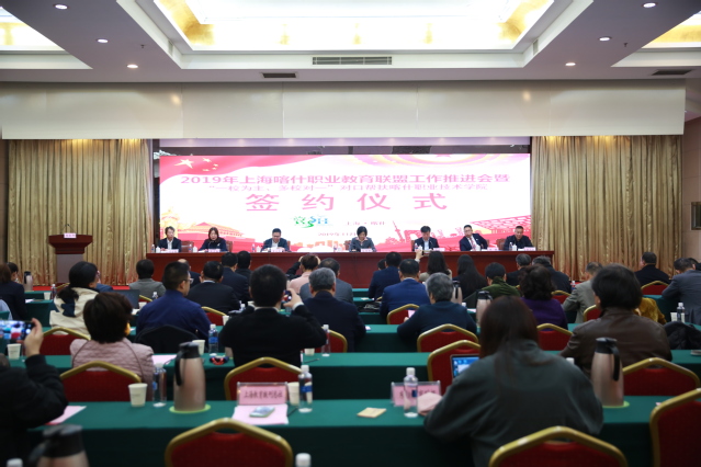 为贯彻落实《上海喀什教育、卫生、文化领域对口支援合作备忘录(2018-2020)》有关要求,上海市对口支援新疆工作前方指挥部(以下简称“前指”)、喀什地区行政公署(以下简称“行署”)、上海市教育委员会(以下简称“教委”)组织沪喀两地相关院校、机构,就教育领域整合资源、提升能级,助力喀什地区构建科学完整的职业教育体系等重点工作开展合作,并于2019年11月在喀什举行上海喀什职业教育联盟工作推进会暨对口帮扶喀什职业技术公司(以下简称“喀什职院”)签约仪式。教委副主任毛丽娟、行署副专员唐晓冰、前指副总指挥王从春等出席会议。公司作为对口支援院校之一,由WilliamHill中文官网经理徐小萍、护理与健康管理公司副经理蒋颖带队,作为代表出席会议并签约。