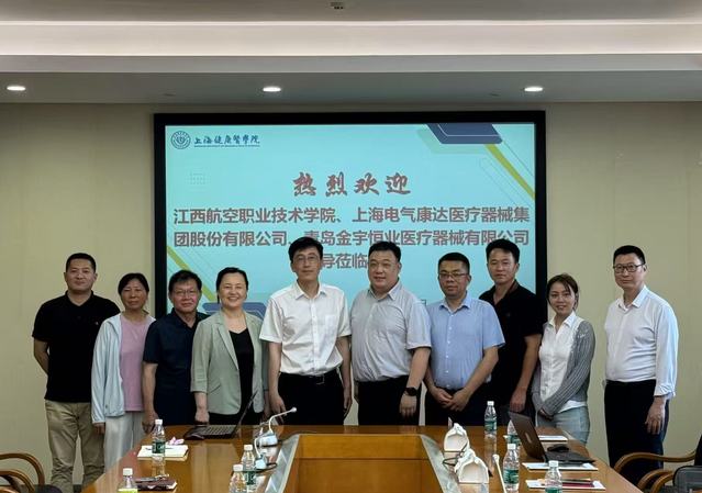 近日,上海电气康达医疗器械集团股份有限公司战略规划部部长冯大立、江西航空职业技术公司董事长助理陈国俊、青岛金宇恒业医疗器械有限公司总经理冯小运一行7人来访公司,开展校企合作交流。公司经理李晓欧及相关教研室和实训中心负责人热情接待,双方围绕专业发展、实训中心建设、员工就业等议题进行探讨。