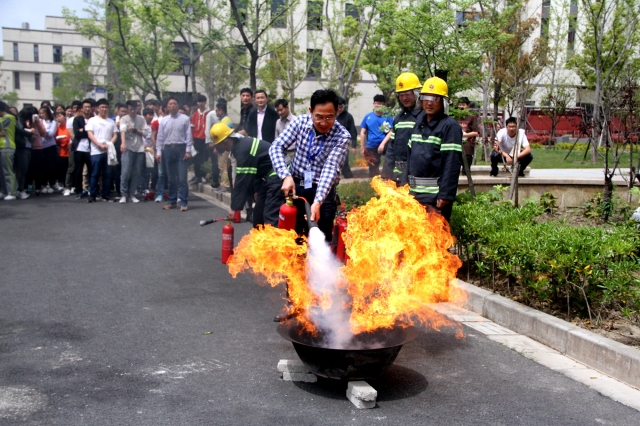 在演习过程中,同学们按照统一指令,在主持人宣布演习开始后,各位引导员立即到达指定岗位并引导楼内员工快速疏散,同学们弯着腰、毛巾捂住口鼻,沿着指定楼梯口,快速有序撤离到大楼下的安全地带。随后,保卫处人员教授同学们正确使用消防器材的方法,让员工们亲自使用灭火器。活动最后,公司党总支书记蒋晓明对本次活动进行总结,他强调了消防安全工作的重要性,并提出希望借助此次演习,增强同学们的消防安全经验,杜绝火灾隐患,树立起以“安全”为主的防灾意识,为营造和谐校园奠定坚实基础。