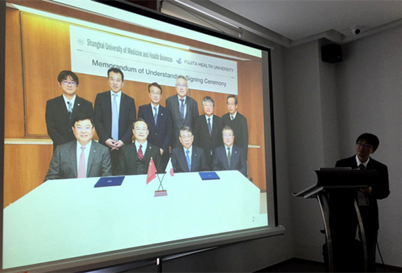 仪式结束后,藤田保健卫生大学医疗科学部寺本篤司副教授为大家介绍了藤田保健卫生大学及其医疗科学部的概况。双方领导和专家就团队建设和国际化合作与交流等方面展开了讨论并达成合作共识。