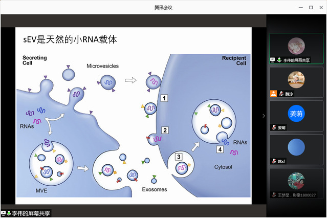 会上,医学影像技术教研室副主任李伟作了题为《sEV作为小RNA载体的研究》的学术报告,报告包含了研究选题、研究思路设计、目前研究成果等内容。随后,黄清明博士向与会人员分享了自己在磁共振射频线圈谐振电路性能评价方面的研究成果,思路清晰、重点突出。