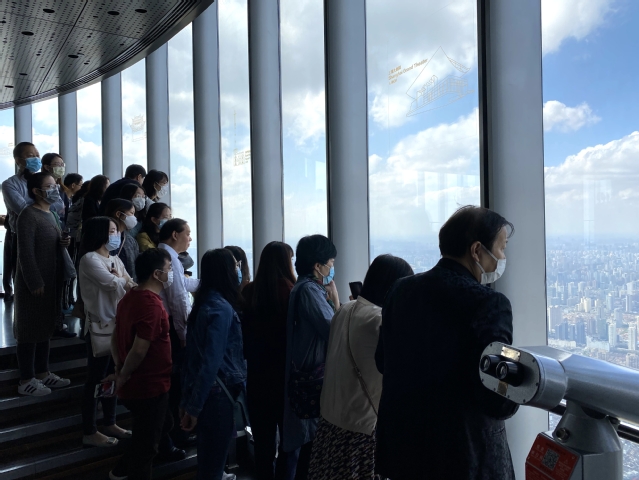 活动当天,公司一行来到上海中心大厦,对于期待已久的出游,教师们兴致盎然、热情高涨。在进入大厦后,首先步入B1层的上海之巅展示厅,通过导游的专业讲解,以及对各类图片、模型的观摩,大家系统地了解了世界各著名高楼的分布和上海中心大厦的整体构造,感受到了陆家嘴地区的沧桑巨变,为改革开放后上海的飞速发展感到骄傲和自豪。随后,公司一行搭乘世界上最快的超高速电梯到达大厦的118层观光厅,随着导游的讲解教师们饱览浦江两岸大好风光,对陆家嘴和外滩著名建筑的历史沿革有了一定了解。当天蓝天白云,能见度极高,登高望远令人心旷神怡,大家感受到了巨大的视觉冲击,对上海的日新月异发出了由衷的赞叹。当天下午,公司一行来到位于黄浦区打浦桥街道的田子坊进行参观,田子坊目前还是居民居住的里弄,景区内充满着生活气息,弄堂里除了创意店铺和画廊、摄影展,有许多的咖啡馆,教师们在参观过程中体会到了闲适恬静的感觉,给人一种偷得浮生半日闲的意境,纷纷在网红店铺前拍照留念。