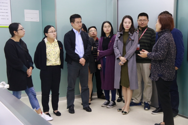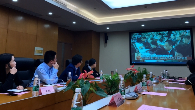 本次的互访活动恰逢中国共产党第十九次全国代表大会开幕,当天在南苑影像楼306会议室,五四红旗团委创建单位第七组的成员们集中观看了十九大开幕会直播,聆听习近平总书记所作的报告,在观看过程中各位团干部聚精会神,时而互相低声交流各自的心得体会、时而低头认真记录报告中的重要内容,会场气氛庄严而富有生气。在交流环节中小组成员进行了热烈的讨论,他们对报告中十个方面的历史性成就开展深入探讨,就各自感想进行交流。大家纷纷表示要“践行初心,不忘精神”,以团建促党建。会后,与会嘉宾在WilliamHill中文官网实训中心主任俞洁莹的带领下参观了影像楼的实训中心和实验室。