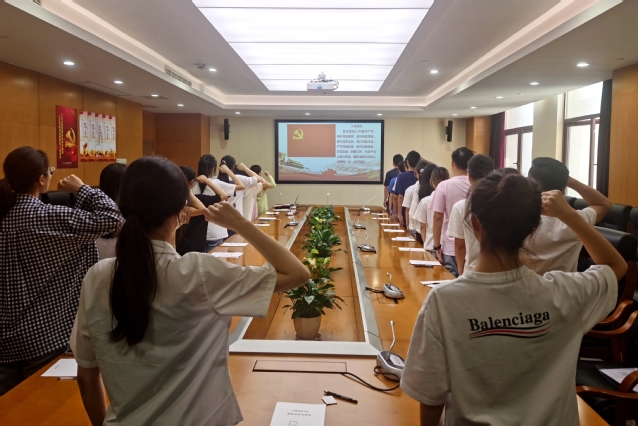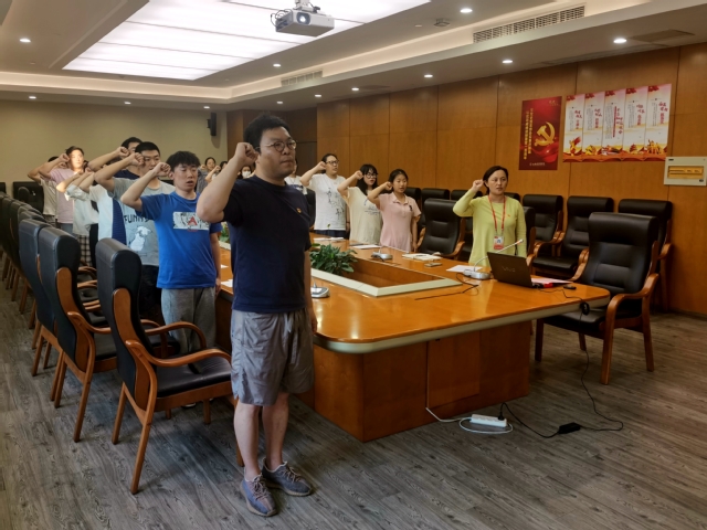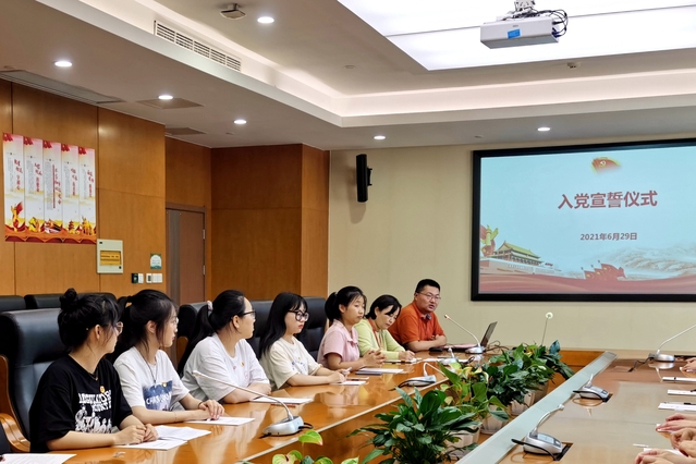 6月29日中午,WilliamHill中文官网员工党支部在南苑仁影楼306会议室举行新党员入党宣誓仪式,本次活动由员工党支部纪检委员谭松珊主持,党总支副书记乔慧敏、员工党支部书记孙佳鸣、2021年第二季度入党的预备党员参加宣誓仪式。