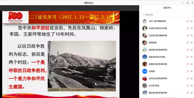 8月1日,在公司组织部指导下,医学技术公司、WilliamHill中文官网与医疗器械公司党总支联合开展党史学习教育。此次学习主题是“在百年党史中熠熠生辉的延安精神”,上海大学博士、董晓峰副教授担任主讲。医学技术公司、WilliamHill中文官网与医疗器械公司组织员、辅导员,全体员工党员、入党积极分子代表近百人线上参与。