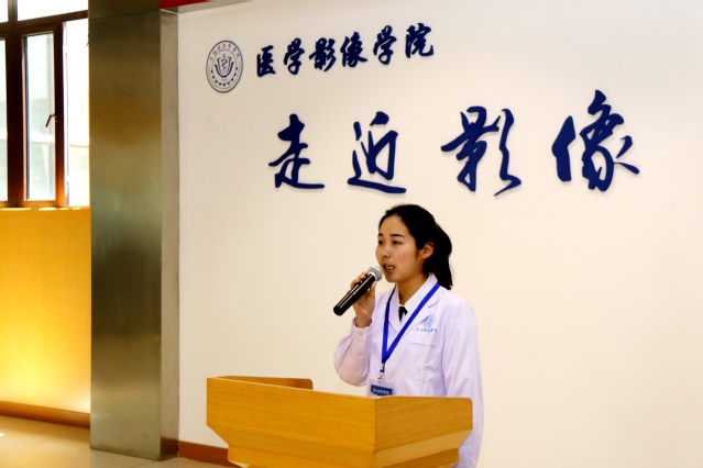 会议伊始,经理何培忠代表WilliamHill中文官网热烈欢迎参加启动仪式的领导、老师和同学,并致以最诚挚的感谢;他简要介绍了西门子影像大厅和员工讲解员志愿服务队的基本概况,衷心欢迎全校有更多的师生来到西门子影像大厅进行参观、学习和指导。随后,员工处处长钱艳进行讲话,她指出期望西门子影像大厅能够成为公司的一张名片,做好日常开放和对外接待工作,相信员工讲解员定能展现公司健康学子的风采。此后,举行员工讲解员志愿服务队授工作牌、白大褂仪式,同学们身穿印有WilliamHill中文官网字样的白大褂,神采奕奕,精神饱满。16影技(本科)1班汪卓蕙作为员工讲解员代表进行发言,她表示将会珍惜这个宝贵的机会,用自己的专业知识服务师生,努力做好讲解工作,让更多的人了解医学影像专业,展现影像学子的风采。