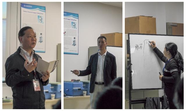 本次教学研讨班以周进祝教授等主编的《超声检查技术》教材及专家们撰写的活页讲义为蓝本,邀请交大医公司附属新华医院崇明分院沈理副经理和复旦大学附属华山医院超声科丁红教授展开腹部超声检查理论教学,并结合大量临床案例,强调超声检查准备、规范操作和应用新技术的重要性,体现教学与临床对接的理念。