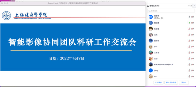 4月7日晚,智能医学影像协同创新团队举行了“线上”学术活动。首先,各位老师就近期工作进展、阶段性工作亮点、技术创新、存在的困难及下一步工作计划等进行了深入交流;其次,团队秘书唐智贤博士和大家交流了团队年度任务与指标;最后,团队负责人姚旭峰副经理就老师大家近期遇到的困难和问题进行了耐心解答,强调团队成员之间注重合作和协作,取长补短,围绕智能影像开展创新研究,提升学科专业内涵。
