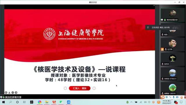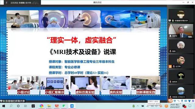 说课程环节由徐小萍经理主持,医学影像技术专业青年教师黄辰进行《核医学技术及设备》课程说课,智能影像工程青年教师陈珊珊进行《MRI技术及设备》课程说课。两位教师分别从课程的基本情况、教学实施、教学设计、教学反馈、教学档案及课程特色等方面进行汇报。