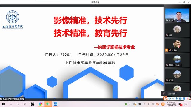 说专业环节由徐小萍经理主持,医学影像技术专业主任彭文献及智能影像工程专业主任程敬海分别进行汇报。两位专业主任就专业定位、专业发展及办学条件、培养过程、办学成果、专业办学思路与举措进行了全方位展示。