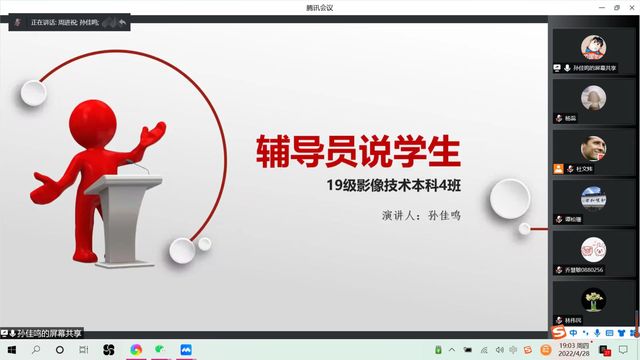 说员工环节由刘红书记主持,辅导员孙佳鸣和沈丹丹两位教师分别对医学影像技术专业和智能影像工程专业展开说员工活动。他们就员工的教育与管理、指导与服务、班团干部队伍建设、第二课堂活动的开展及班级学风建设等方面进行汇报。