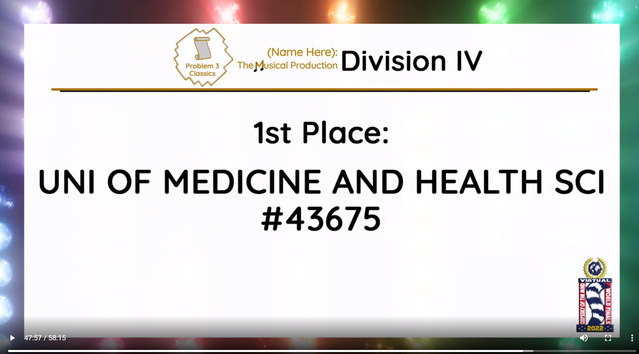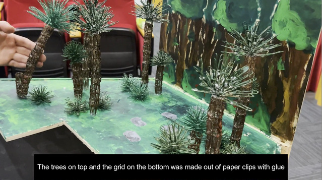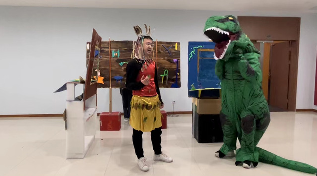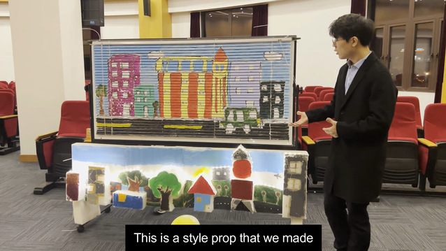3月突如其来的疫情封控,打乱了队员们备赛2022年OM线上世界赛的节奏。在面临严峻的疫情挑战时,作为医员工,大多参赛队员都义不容辞地奔赴抗疫一线,参加防疫志愿者工作,有的担任抗原检测志愿者,有的管理核酸检测秩序等。在完成志愿者工作之余,队员们积极备战世界决赛,利用碎片时间进行了多次线上讨论剧本道具、交流解题思路并修改方案。例如,在工程类赛题中,为了节约时间和控制成本,队员们省去体积较大的道具设计,巧妙地设计了一个主舞台和一个微观舞台,并将评分点中“回形针的使用”运用在微观舞台的搭建上,用回形针制作成不同的景观,以此达到不同景别之间的来回转换,调动观众的视觉感官。比赛过程中,队员们展现了极强的创造力、表现力和团队协作能力,最终富有创意的参赛作品获得了裁判们的一致好评。今年的古典类赛题与以往不同,主题是音乐剧,因此除了道具和剧本的完善,音乐风格也是相当重要的一个部分。参赛队创新采用翻转背景板的方式,在背景板的正反两面都做了设计,其中利用麻绳围成高脚杯、碗、帽子以及展览柜里的展览灯等立体物品道具,贴合音乐剧中原始部落的“原始感”,在国际赛中受到评委的好评。