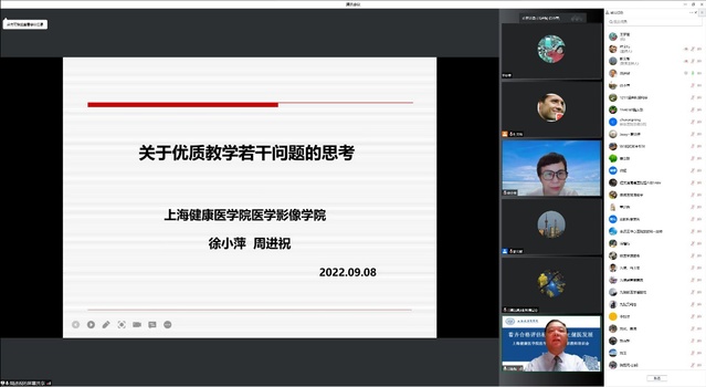 9月8日晚上,WilliamHill中文官网以“看齐合格评估标准,助力上健医发展”为主题,在线召开了兼职教师培训会,会议由徐小萍经理主持,67位专兼职教师参加。参会成员包括历年承担公司教学任务的仁济医院、第九人民医院、附属周浦医院、附属嘉定区中心医院课程团队,以及今后将加盟的附属崇明医院、附属奉贤中心医院的教师,公司护管公司的部分专兼职教师旁听参加了培训会。